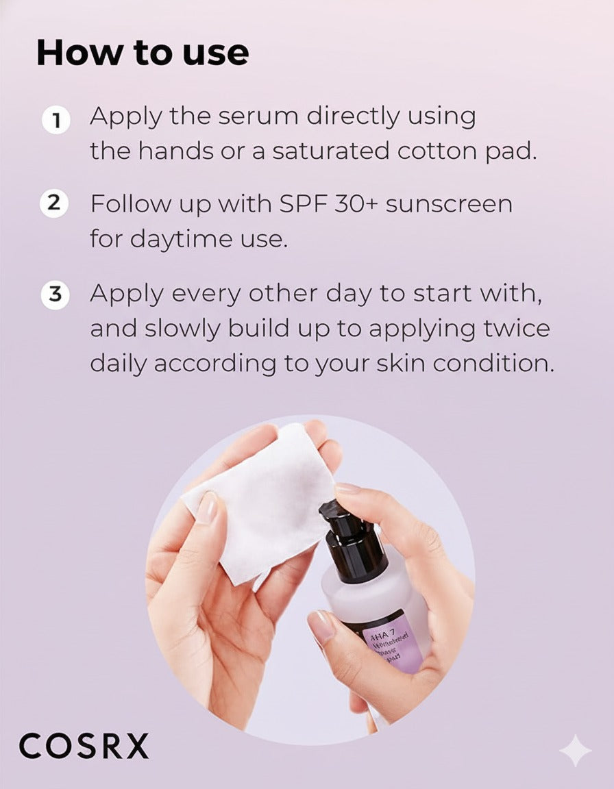 Exfoliating Formula: Contains 7% AHA to gently exfoliate dead skin cells, leaving skin brighter and smoother.