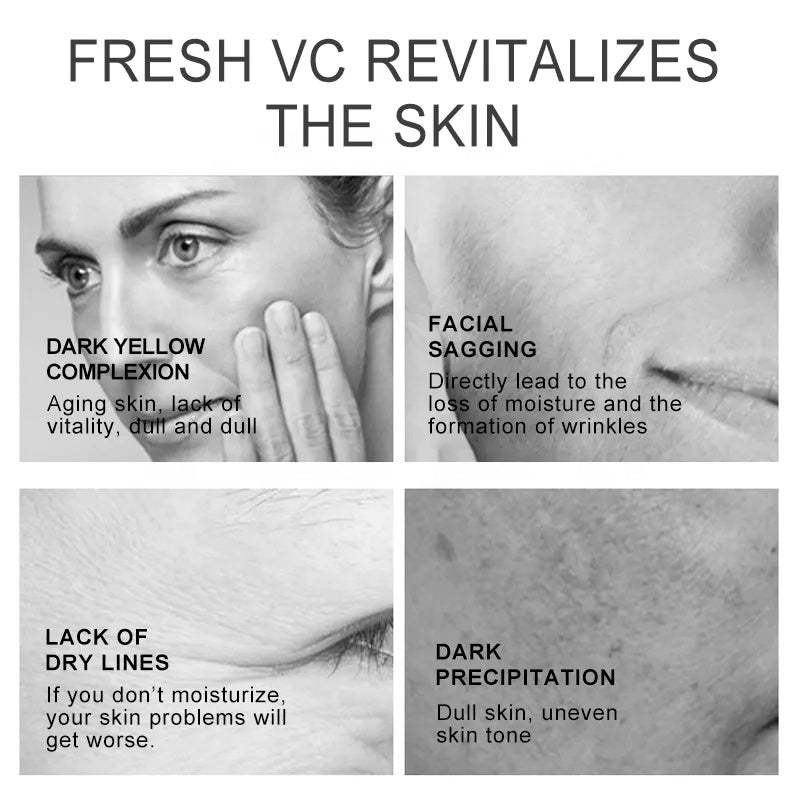 تفتيح البشرة: يعزز فيتامين C إشراقة البشرة ويقلل من البهتان.